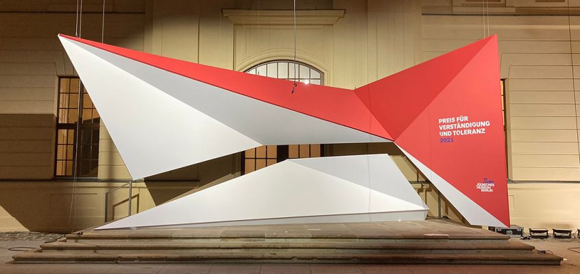 Auftraggeber: Art Lights Kulturservice GmbH Termin: November 2021 Veranstaltung: Preis für Verständigung und Toleranz 2021 Location: Jüdisches Museum Berlin zu unseren Aufgaben zählte: Konzeption, 3D Planung, Anfertigung und Montage des … Weiterlesen