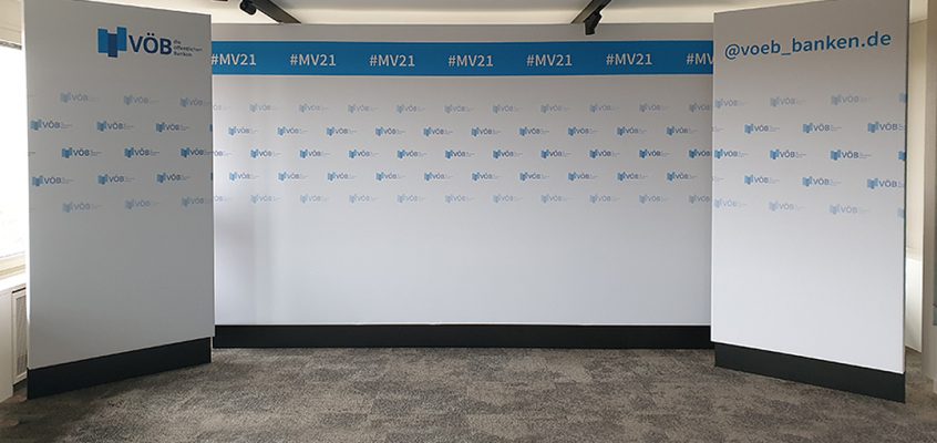 Auftraggeber: artribute GmbH & Co. KG Termin: November 2021 Location: VÖB Zentrale Berlin Mitte zu unseren Aufgaben zählte Fotowand / Streaming Rückwand