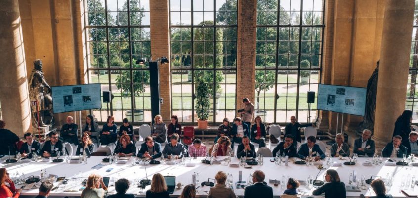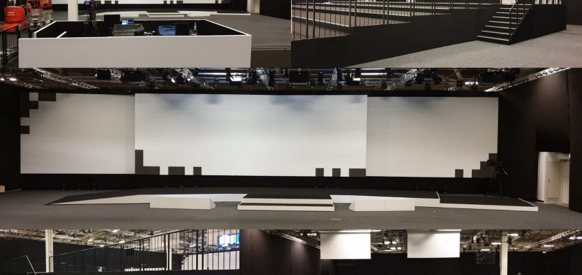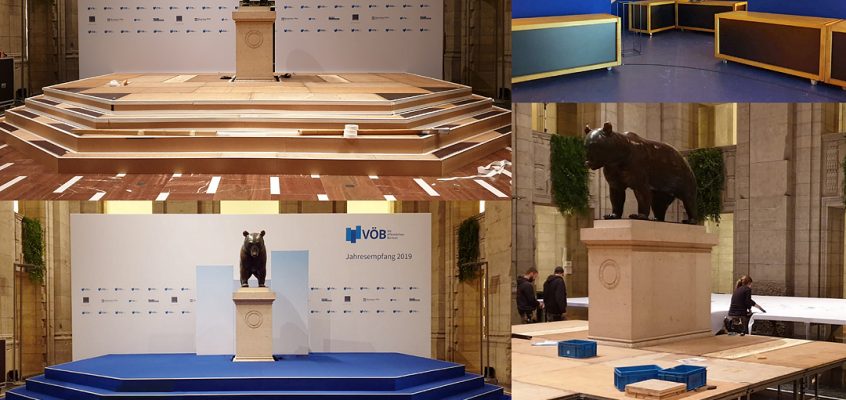 Auftraggeber: lbrty&vstnss eventmarketing Termin: September 2019 Location: Orangerieschloss im Park Sanssouci zu unseren Aufgaben zählte: Bühnenrückwand mit Projektionsfläche Kongresstischplatte und Verkleidung