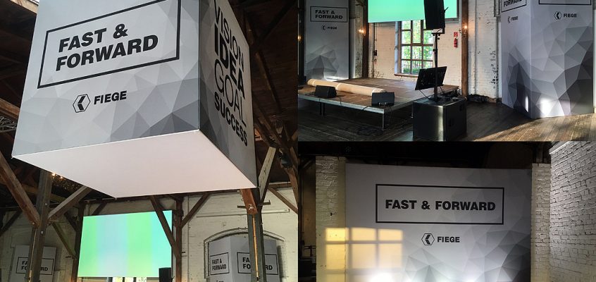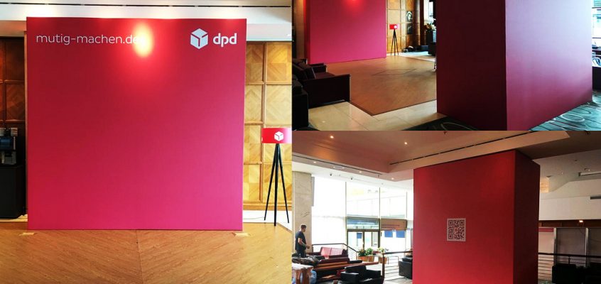 Auftraggeber: moin GmbH Termin: Oktober 2019 Location: von Greifswald Berlin zu unseren Aufgaben zählte u.a. Bühnenseitenwände Raumtrenner / Wandbau gebrandete Deckenkuben