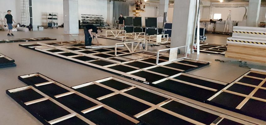Kunde: mediapool Veranstaltungsgesellschaft mbH Termin: Juni 2017 Location: Schloss / Humboldt Forum zu unseren Aufgaben zählte u.a.: Wandbauten Projektionsfläche Fußbodenverlegearbeiten