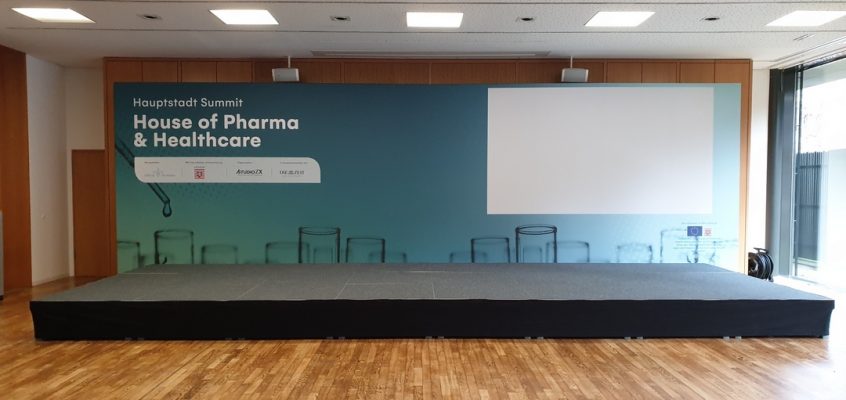 Auftraggeber: TAC Event GmbH Termin: September 2022 Location: Dorint Hotel Potsdam zu unseren Aufgaben zählten: Bühnenrückwand Leinwandrahmen
