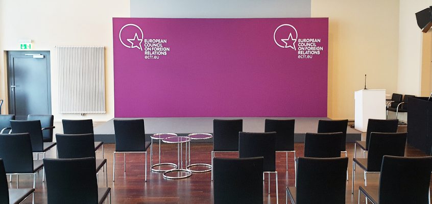 Auftrageber: European Council on Foreign Relations (ECFR) Termin: September 2022 Location: Humbold Carré Berlin zu unseren Aufgaben zählte u.a. Bühnenrückwand