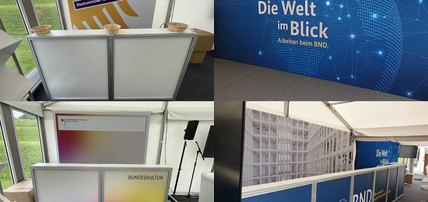 Auftrageber: mediapool Veranstaltungsgesellschaft mbH Termin: August 2022 Location: Kanzlergärten des Kanzleramt Berlin zu unseren Aufgaben zählte u.a. Zeltinnenverkleidungen Rückwande