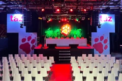 Wir sind spezialisiert auf Wandbau, Raum in Raum Lösungen, Bühnenbilder, Bühnenverkleidung, Bühnenrückwände, Tribünenverkleidung, Projektionsflächen, Pressewände, Sponsorenwände, Fotowände, Kulissenbau, Zeltverkleidungen, Bar- und Buffetverkleidungen, Banner, Brandings und Verlegearbeiten.